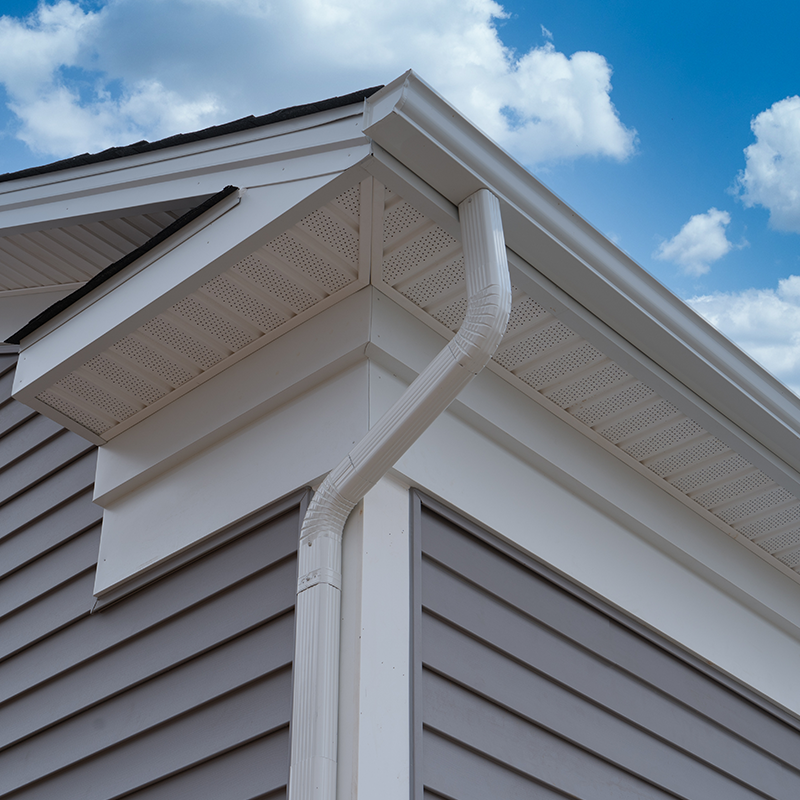 • Vented Soffits – Continuous vented panels help attic airflow and reduce moisture build-up—key to longer shingle and sheathing life.
